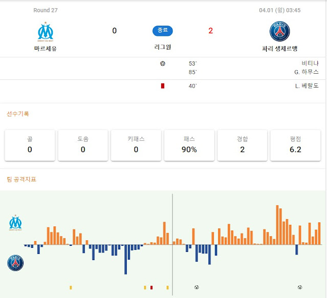 - 40분에 파리 생제르맹의 L. 베랄도 퇴장을 당합니다,