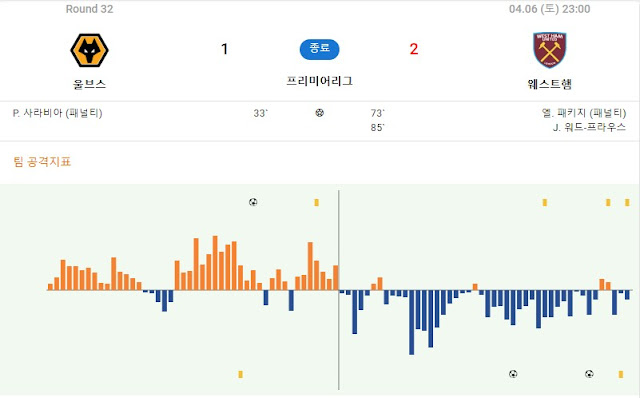 울브스는 여러 차례 공격 기회를 맞았으나 웨스트햄의 골키퍼가 총 6회의 세이브로 많은 슈팅을 막아내며, 울브스의 추가 득점을 저지했습니다. 반면, 웨스트햄은 주어진 기회를 잘 활용해 낮은 공격 숫자에도 불구하고 2골을 기록했습니다.
