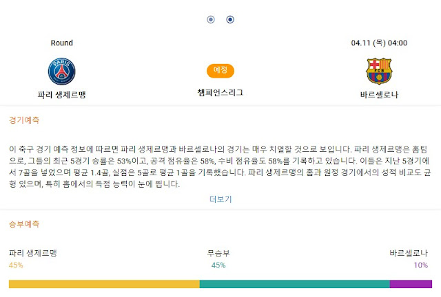 경기 전망을 종합해보면, 파리 생제르맹이 홈에서의 이점과 최근 경기들에서의 좋은 성적을 바탕으로 바르셀로나에 비해 약간 우위에 있을 것으로 보입니다. 하지만 양 팀 모두 강력한 공격진을 보유하고 있어, 다득점 경기가 될 가능성도 있습니다. 따라서 이 경기는 파리 생제르맹의 승리 혹은 무승부로 마무리될 가능성이 높습니다.