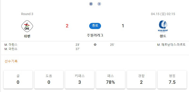 - 뤼벤쪽에서는 M. 마틴스가 경기의 주인공이었습니다. 8.6의 평점으로 2골을 넣으며 팀의 승리를 이끌었습니다. 그의 골 결정력은 이 경기에서 결정적이었습니다.