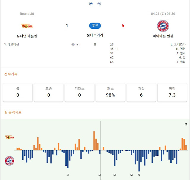 이번 경기에서 바이에른 뮌헨이 유니언 베를린을 상대로 압도적인 5-1 승리를 거두었다. 큰 점수 차이가 나는 경기였음에도 불구하고, 양 팀의 스탯을 면밀히 살펴보면 이러한 결과에 이르게 된 여러 가지 요인들을 발견할 수 있다.